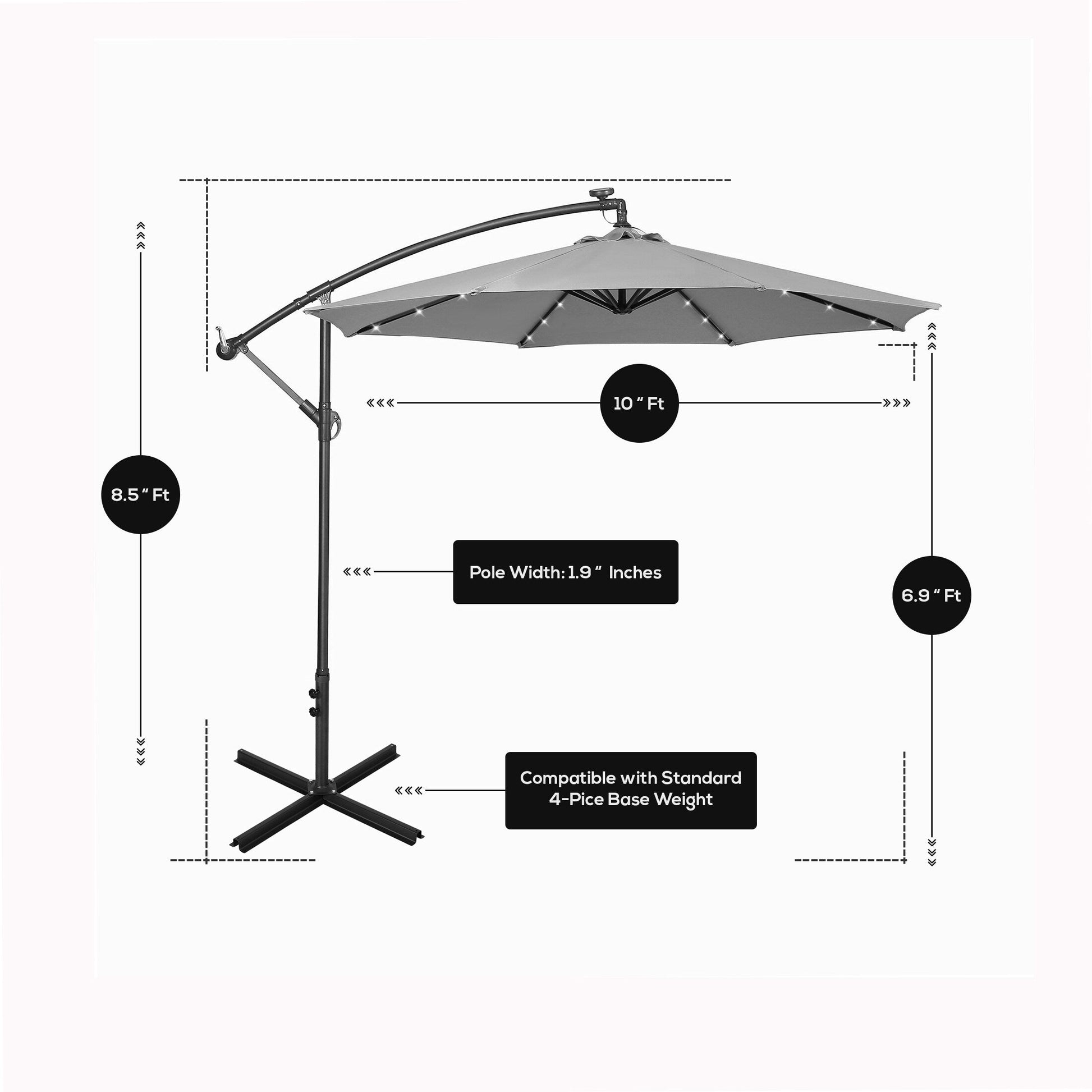 Créez une ambiance chaleureuse dans votre espace extérieur avec notre parasol de terrasse solaire lumineux de 3 m (10 pi) et son pied. Ce parasol déporté résiste aux rayons UV nocifs, garantissant confort et durabilité. Sa structure robuste en acier est résistante aux intempéries et conçue pour durer. Son mécanisme à manivelle facilite l'ouverture et la fermeture. Ce kit complet comprend tout le nécessaire pour créer votre oasis de détente.