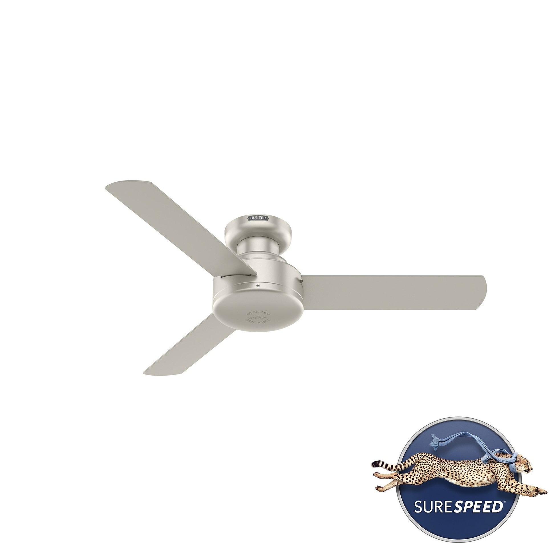 - *D’après des tests réalisés en janvier 2023 comparant la vitesse moyenne du flux d’air à haute vitesse des ventilateurs de plafond Hunter SureSpeed et des modèles en ligne les plus vendus des principaux concurrents.