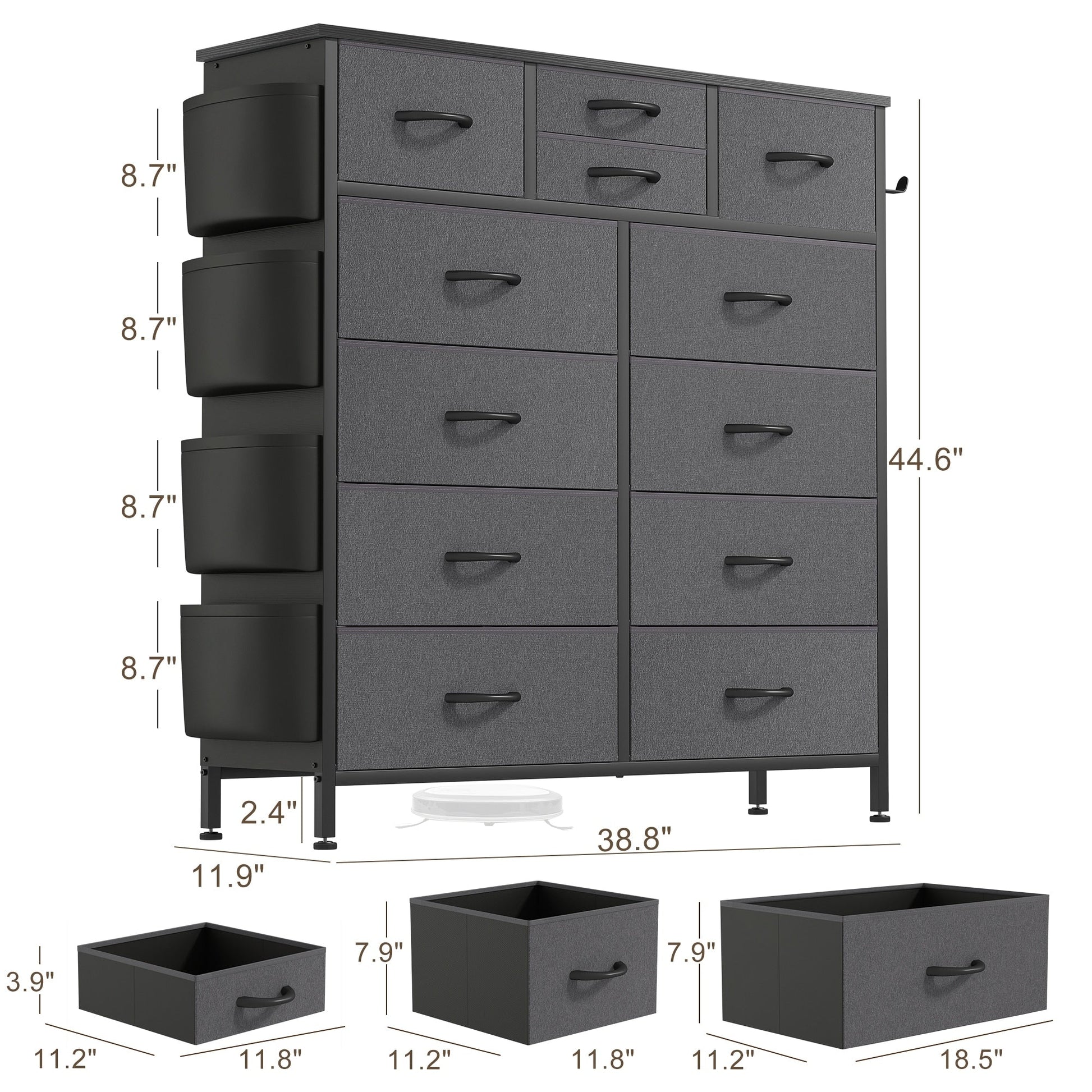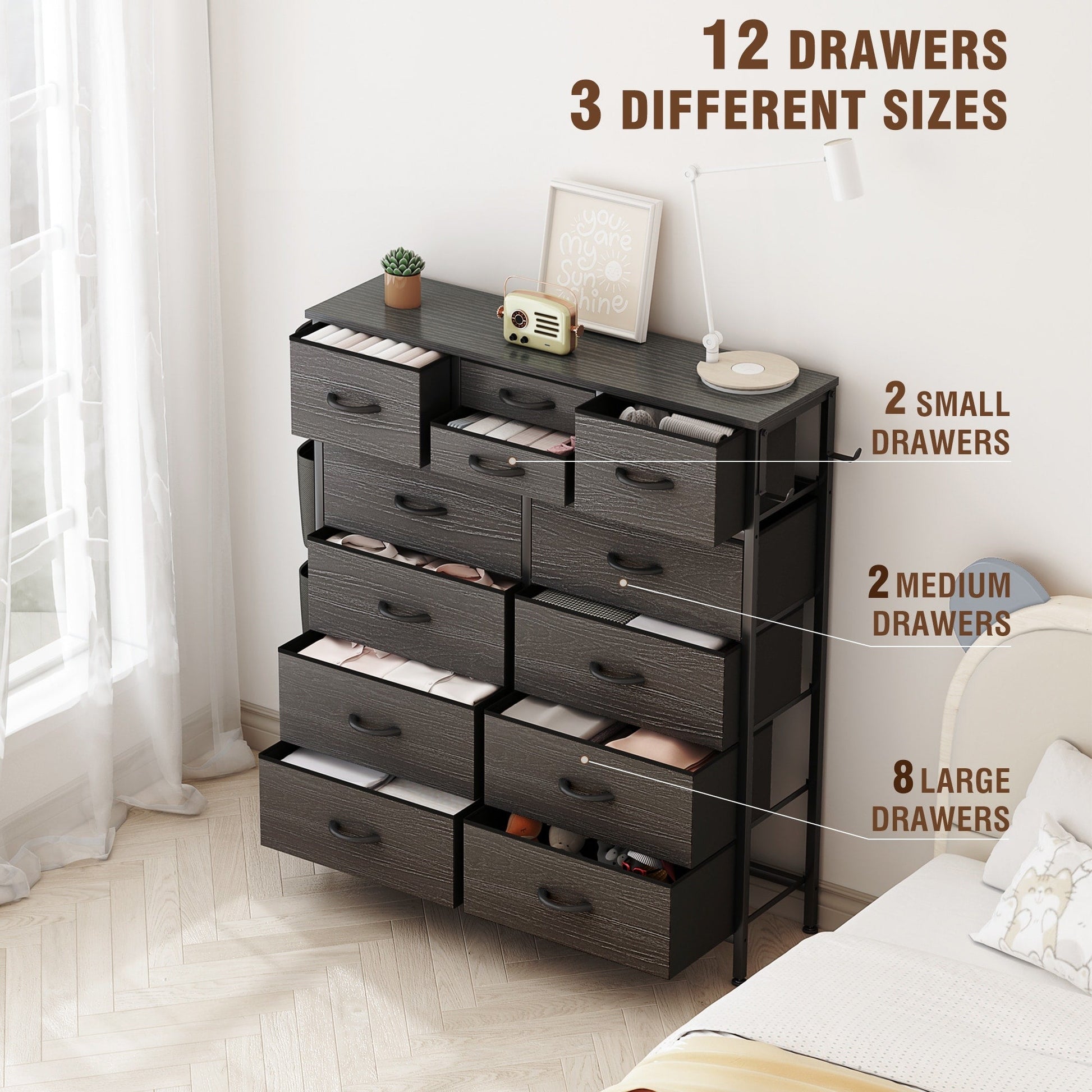 - 【Grand espace de rangement】Grande capacité grâce à ses 12 tiroirs profonds en tissu. Les 3 commodes de tailles différentes sont idéales pour ranger vos vêtements, couvertures, écharpes, chaussettes et autres.