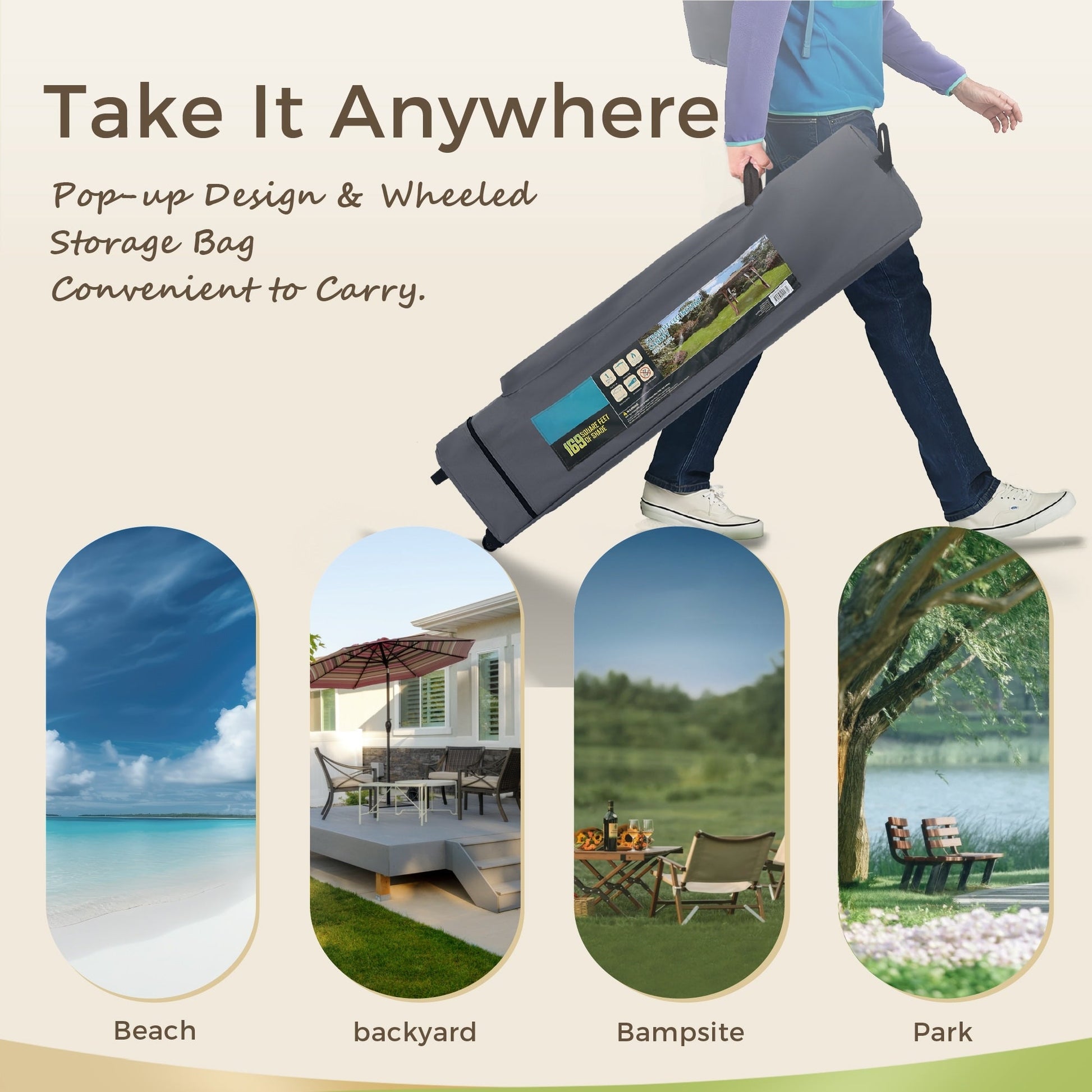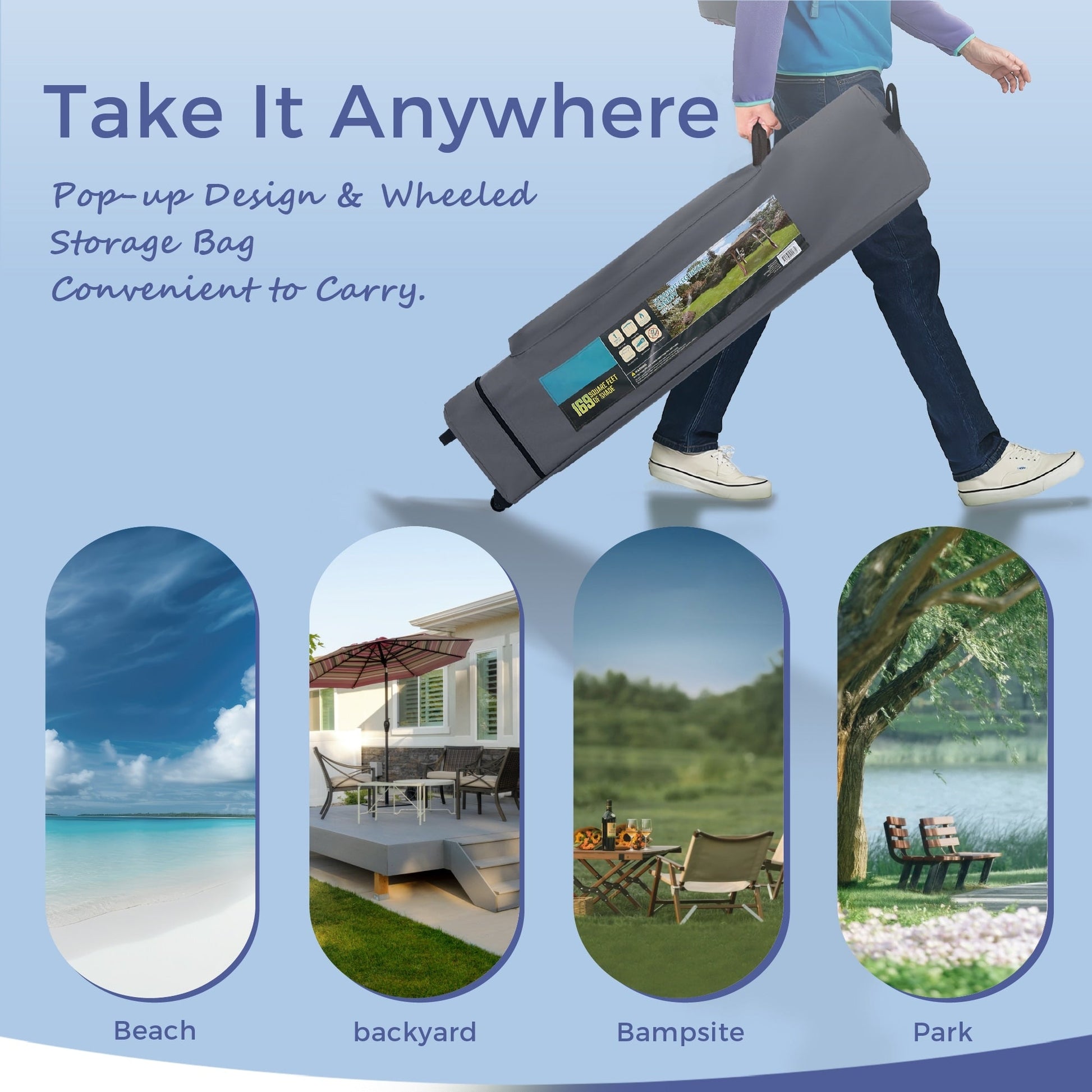 【Accessoire】 : Sac à roulettes inclus pour faciliter le transport et le rangement. N'oubliez pas de stabiliser la toile à l'aide des haubans et des piquets fournis.