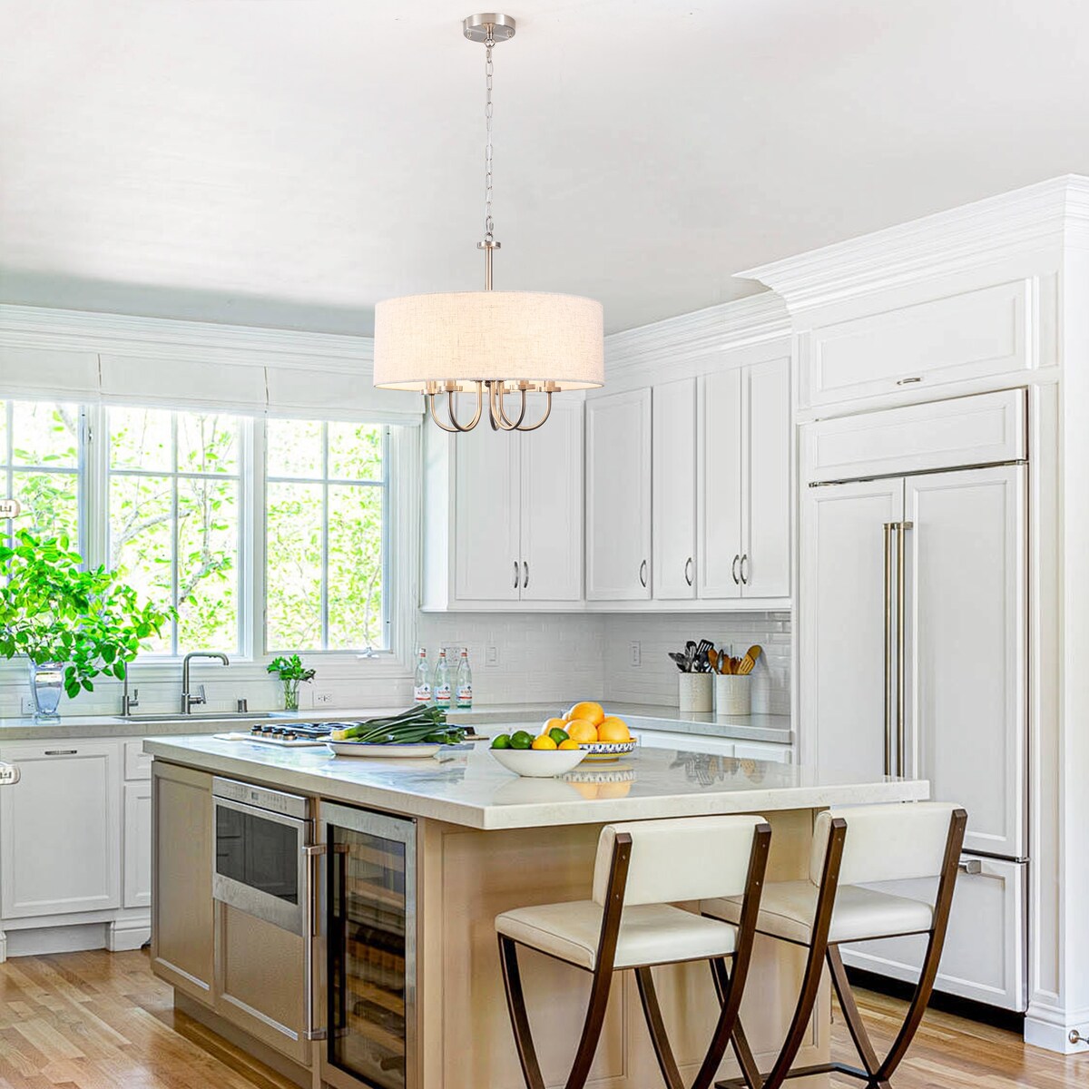 Doté d'un abat-jour cylindrique en lin, ce lustre moderne arbore des éléments de design inspirés du style bord de mer. Cette suspension de style campagnard est composée de métal et d'abat-jour en lin, et le contraste entre la couleur et la texture de l'abat-jour et des éléments métalliques crée un effet visuel original. Ce style est idéal pour les escapades en bord de mer, les lofts décontractés et les maisons de campagne rustiques. Une fois installé, il peut accueillir cinq ampoules de type bougie jusqu'à 60 W (ampoules non incluses), créant ainsi une ambiance chaleureuse à la lueur des bougies dans votre intérieur.