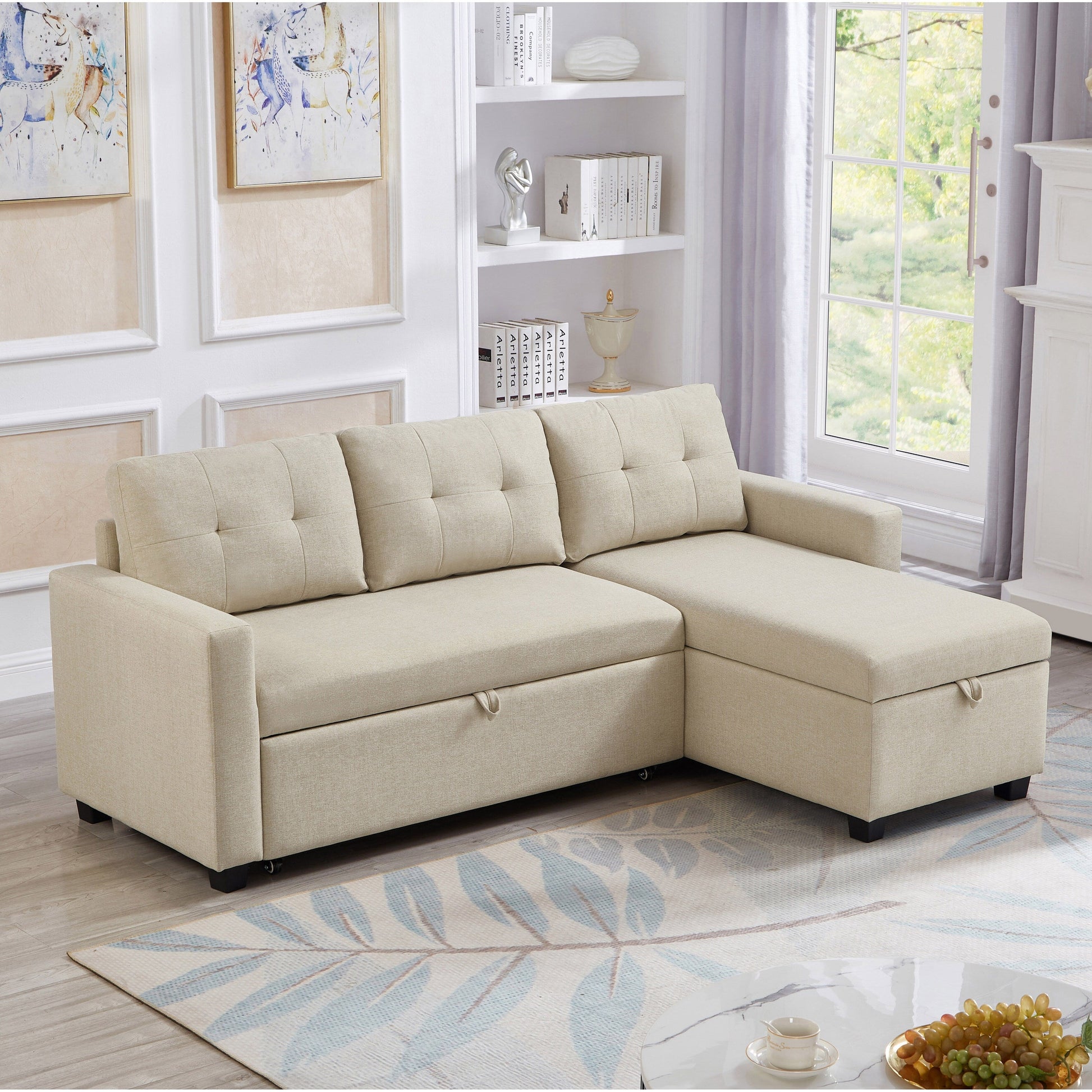 - Canapé-lit convertible en forme de L avec 3 coussins de dossier confortables et amovibles.