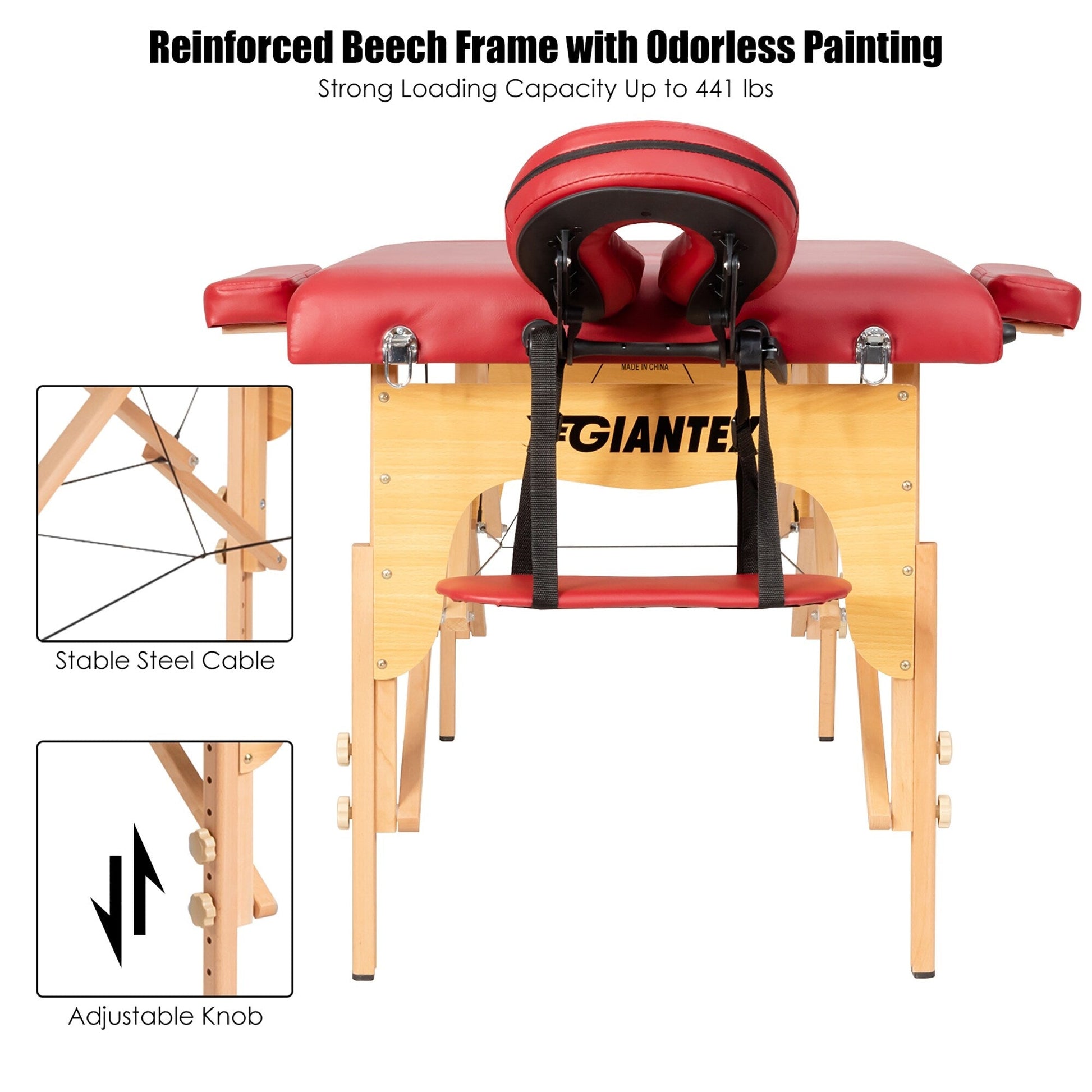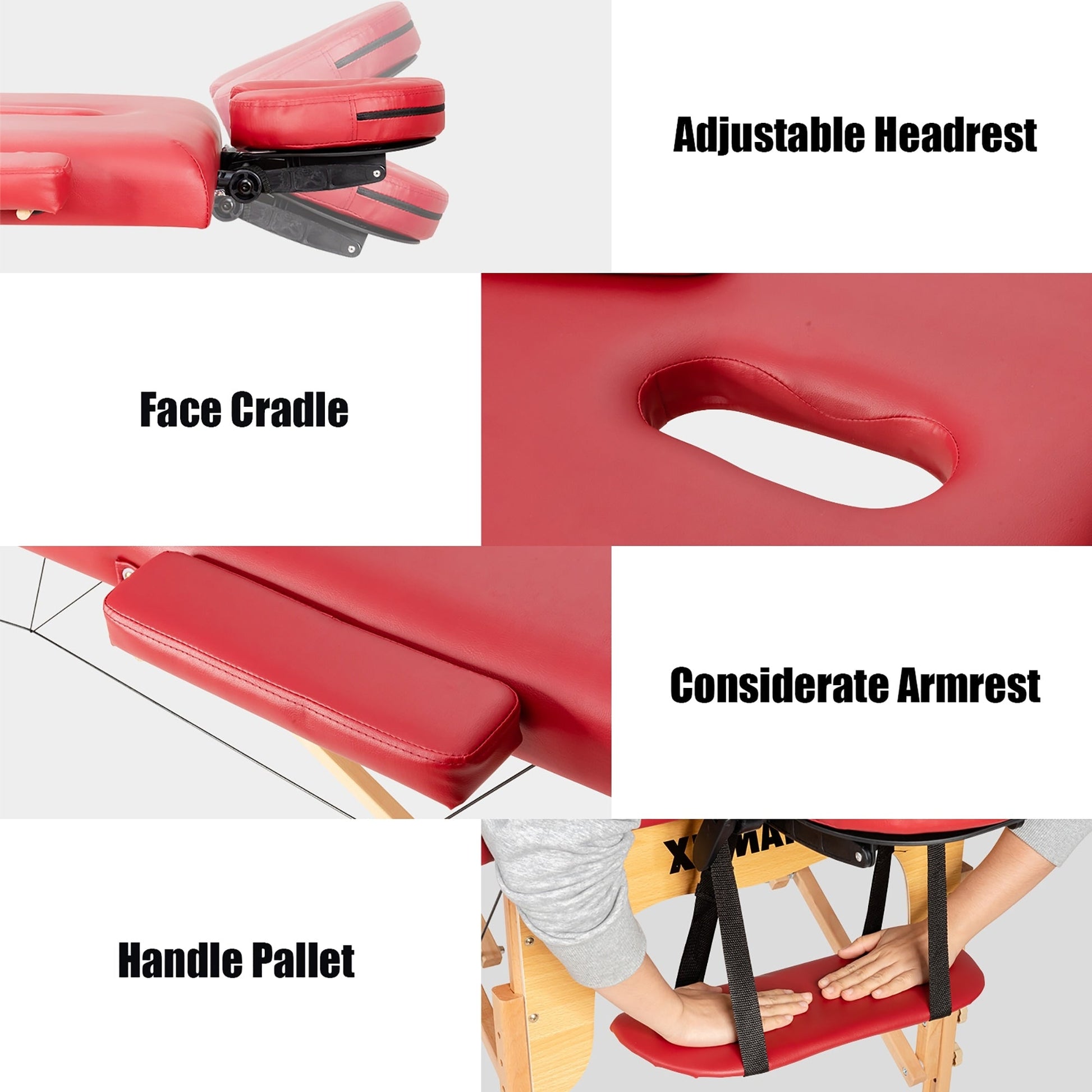 La hauteur et l'appui-tête sont réglables pour s'adapter aux thérapeutes de différentes tailles et répondre à divers besoins. De plus, sa conception pliable et légère permet de transporter et de ranger facilement cette table de spa. Le sac de transport inclus offre un confort supplémentaire. Fabriquée avec une structure en hêtre massif et des câbles de soutien en acier, cette table de massage de haute qualité est robuste et stable, supportant jusqu'à 200 kg. Enfin, la mousse haute densité et le cuir PVC respirant offrent un confort optimal et se nettoient facilement.