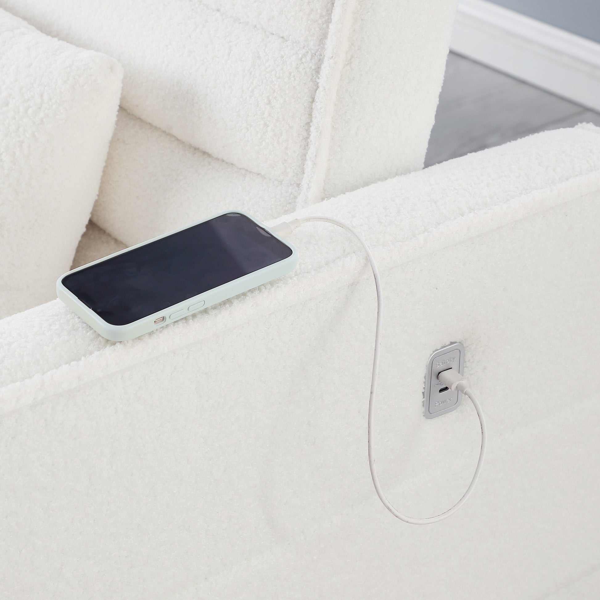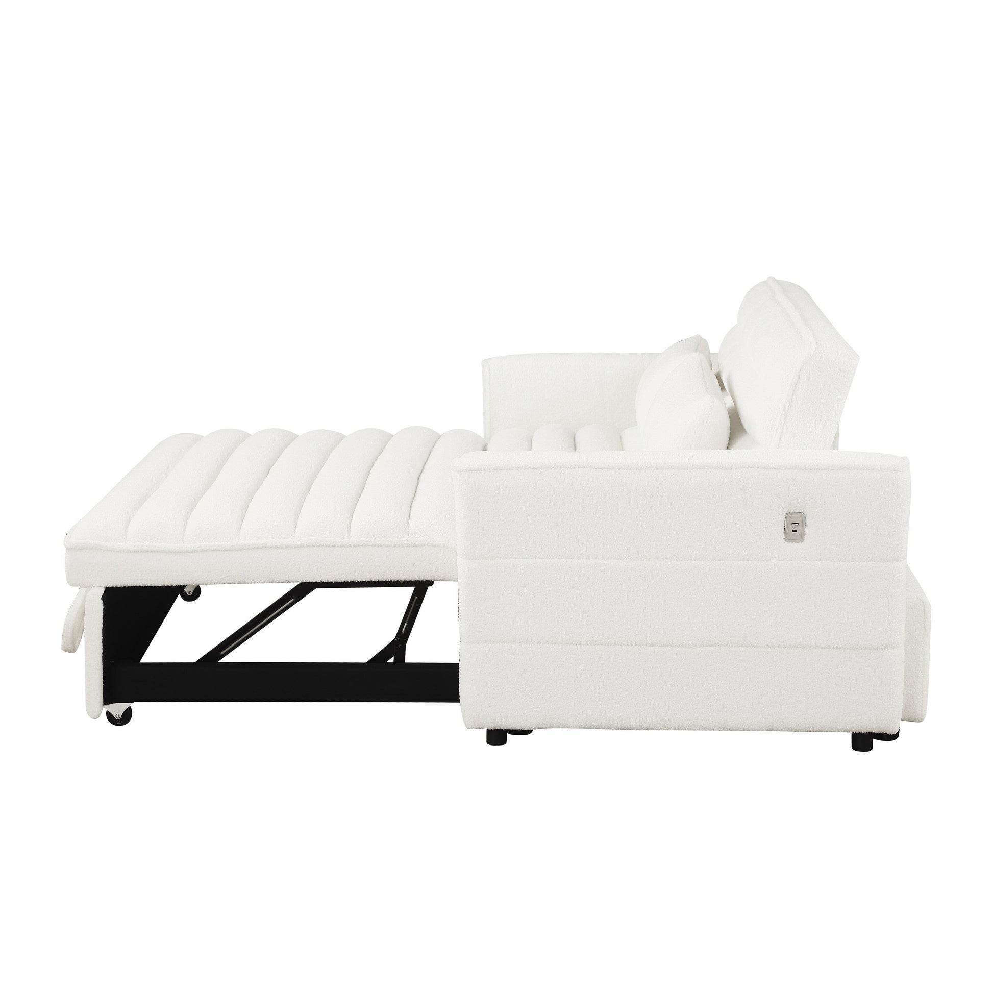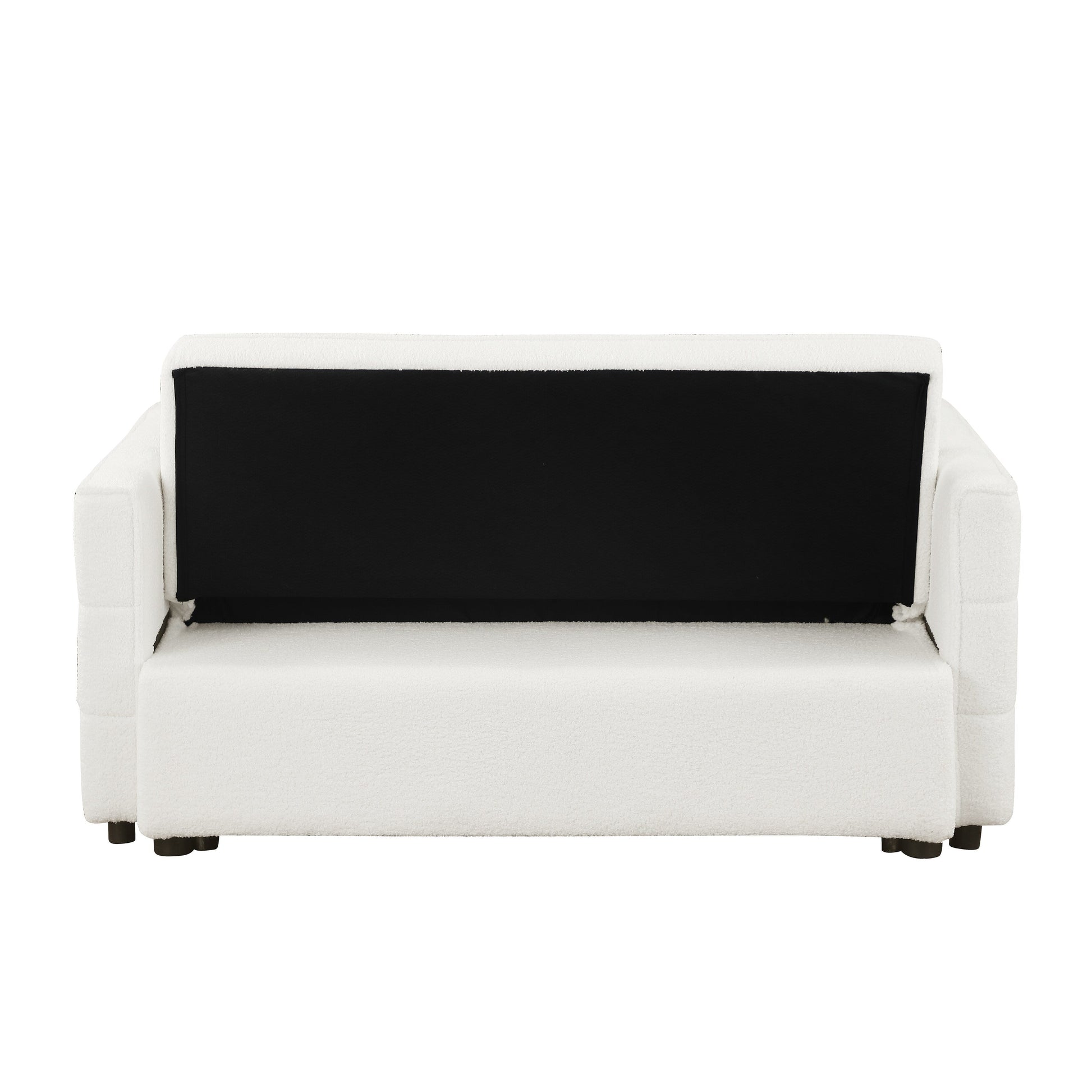 Canapé-lit convertible deux places en tissu bouclé beige 55,12 avec dossier réglable et 2 coussins lombaires pour salon
