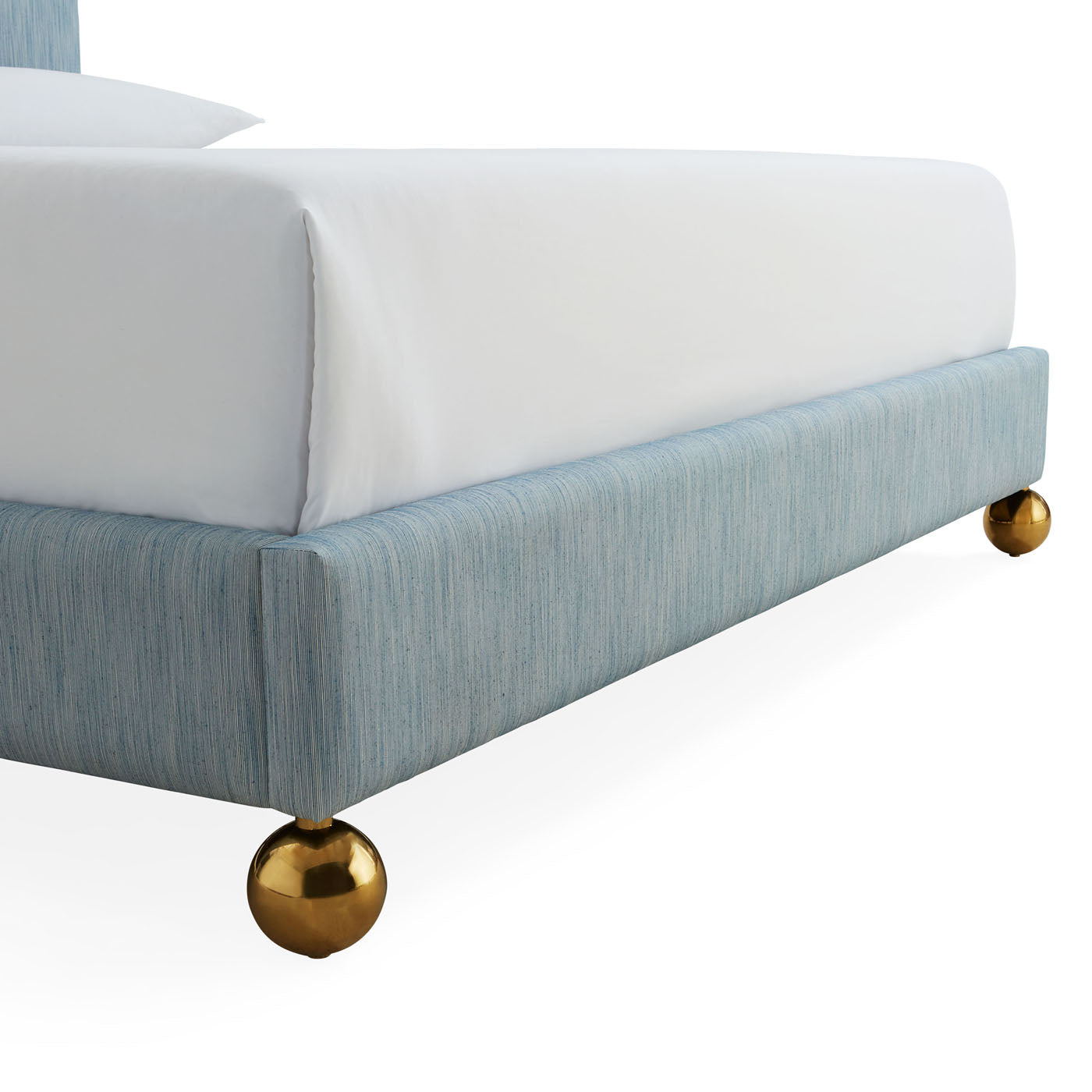 Minimaliste et moderne, notre lit Chevron arbore une silhouette épurée inspirée d'un nœud papillon, enveloppée d'un bleu océan strié aux reflets légèrement irisés : un style à la fois tendance et chic. Ses imposants pieds sphériques en laiton apportent une touche de glamour irrésistible. Un parfait équilibre entre simplicité et originalité, qui fera l'unanimité.