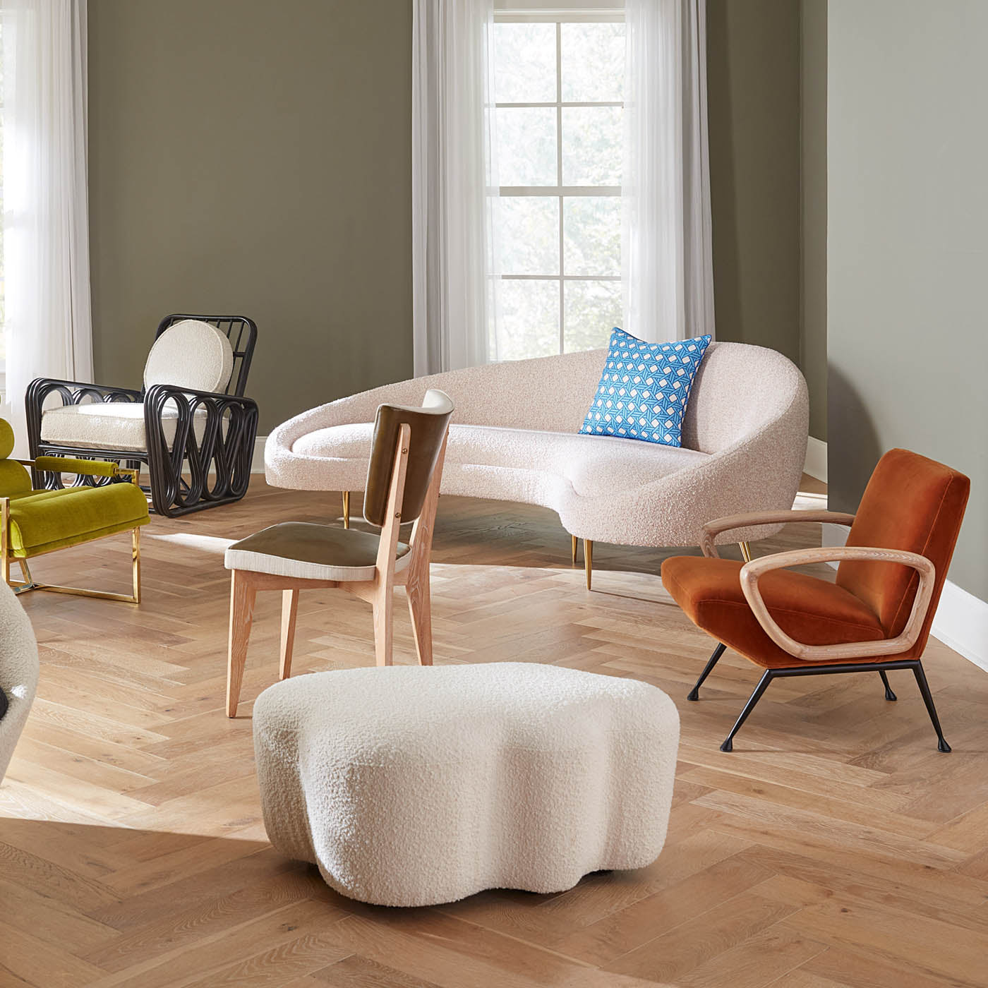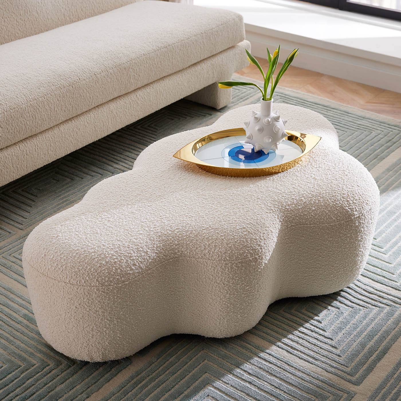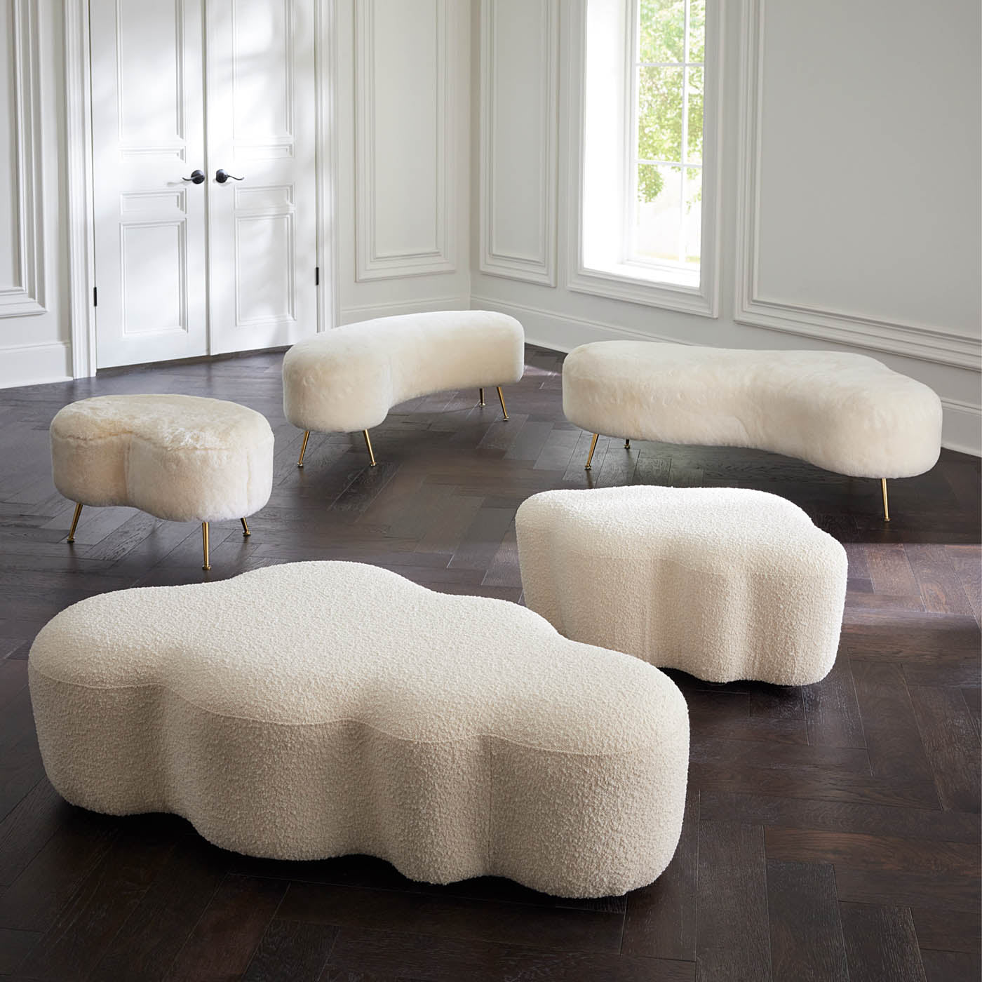 Notre silhouette chic inspirée des nuages se réinvente avec le pouf Ether Cloud. Revêtu d'un bouclé doux et accueillant couleur ivoire Olympus, sa forme surréaliste s'étend jusqu'à dissimuler ses pieds, créant ainsi une présence sculpturale.