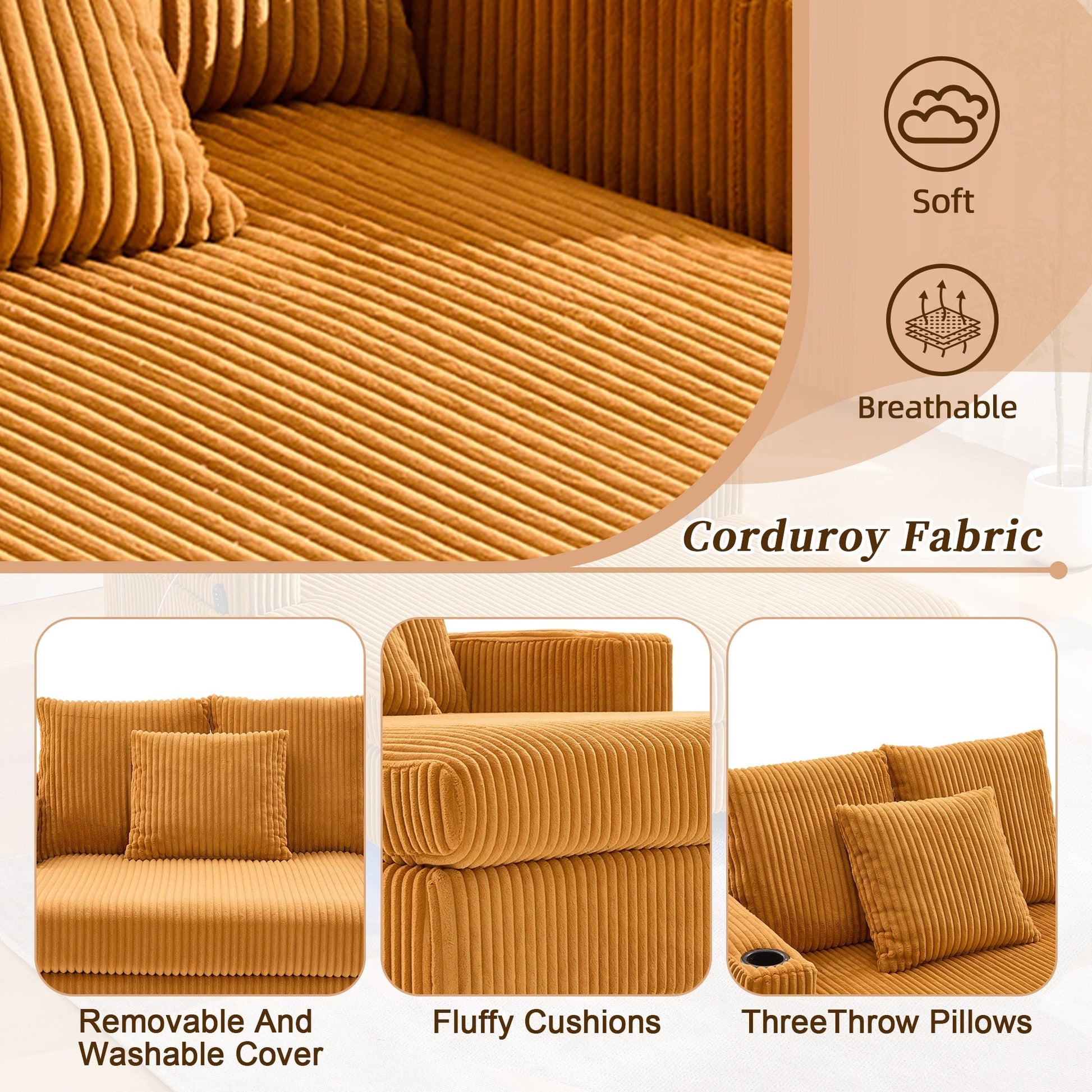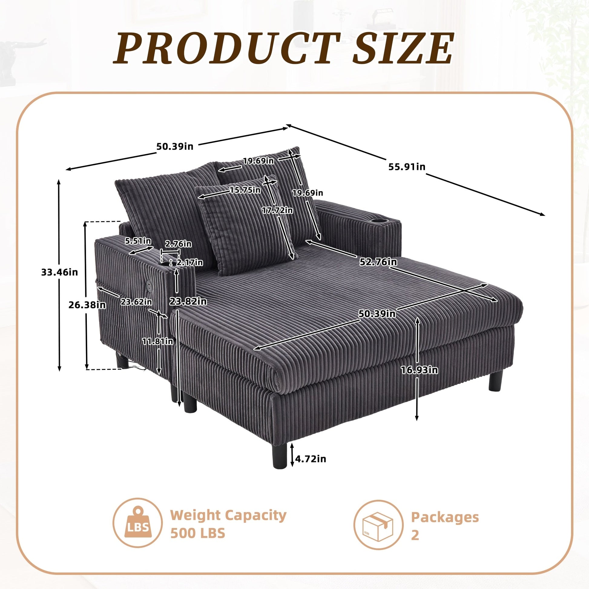 Canapé-lit inclinable surdimensionné HOMEFUN en velours côtelé avec éclairage LED RGB, porte-gobelet, port USB et 3 coussins