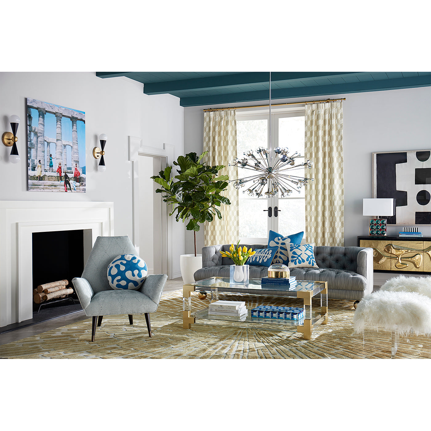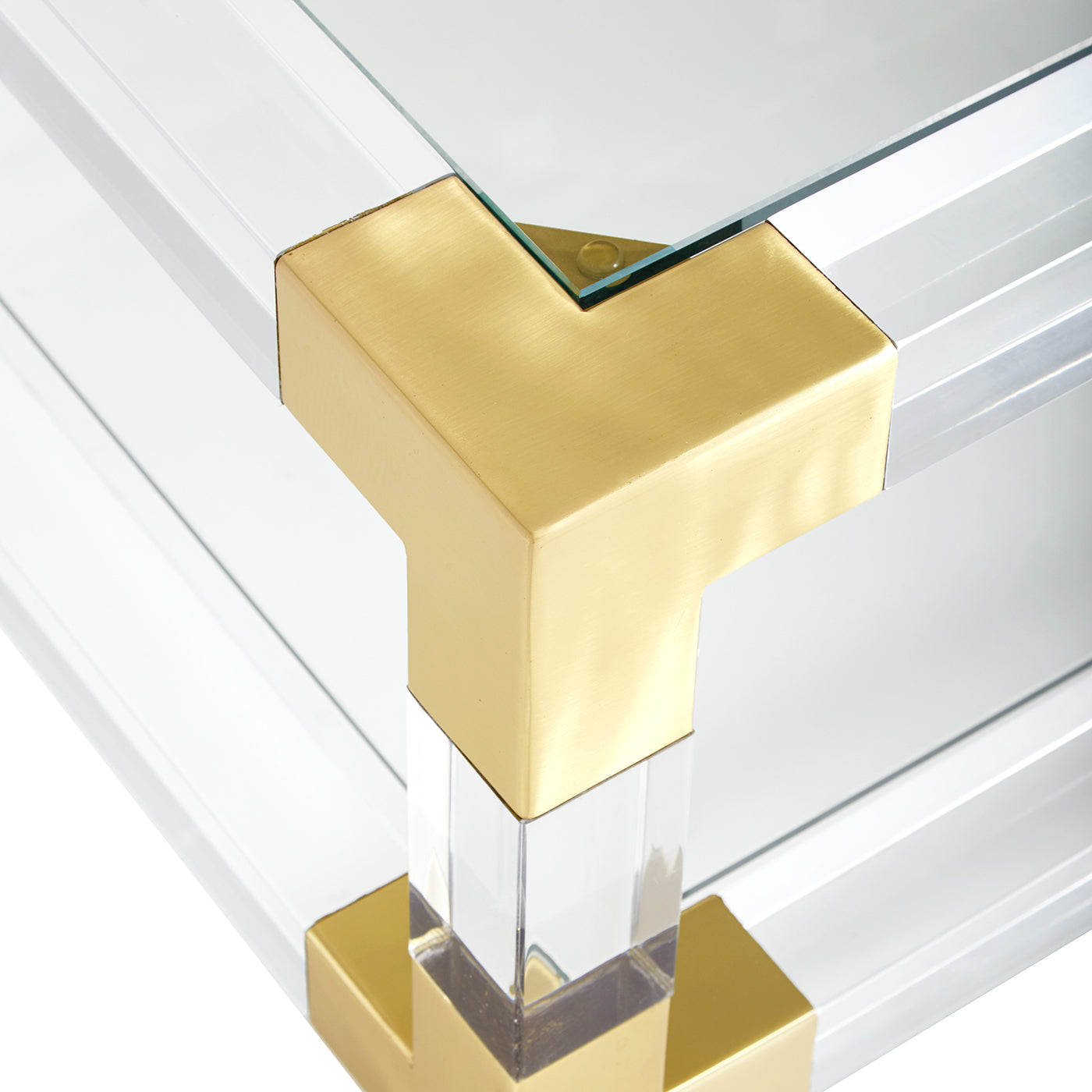 En acrylique transparent luxueux rehaussé de détails en laiton brossé, notre table basse Jacques Grand offre une ambiance basse et décontractée. Ses dimensions idéales la rendent parfaite avec un canapé d'angle ou un grand canapé. Sa seconde étagère offre un espace généreux pour ranger et mettre en valeur vos livres et objets décoratifs préférés. Un mariage parfait entre simplicité et glamour, modernité et tradition. Une présence affirmée, une transparence aérienne.