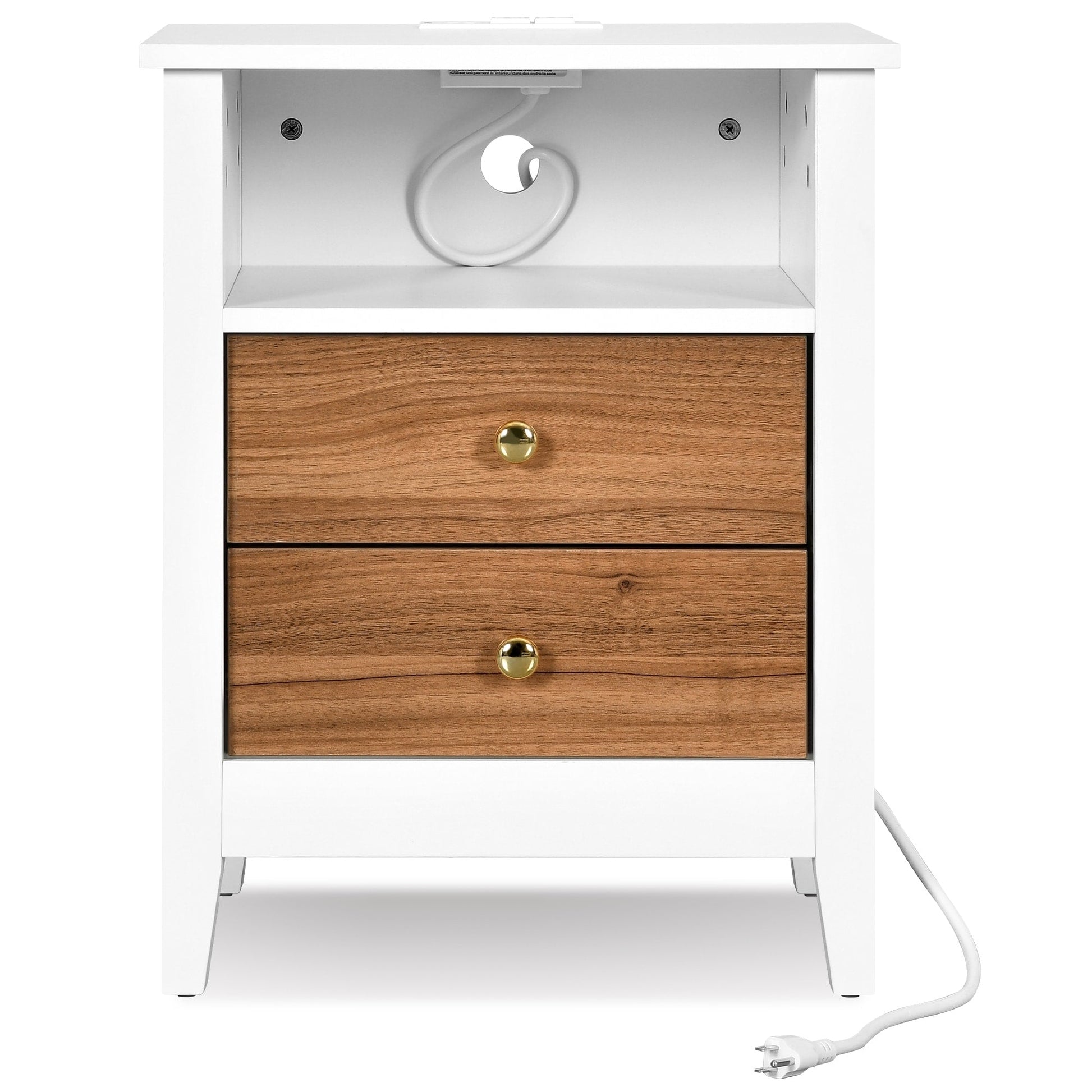 - 1. Appréciez le style élégant et unique de cette table de chevet dotée de panneaux blancs et de poignées rondes dorées qui s'harmonisent avec la plupart des décorations de chambre. Elle crée une ambiance de lecture confortable le soir.