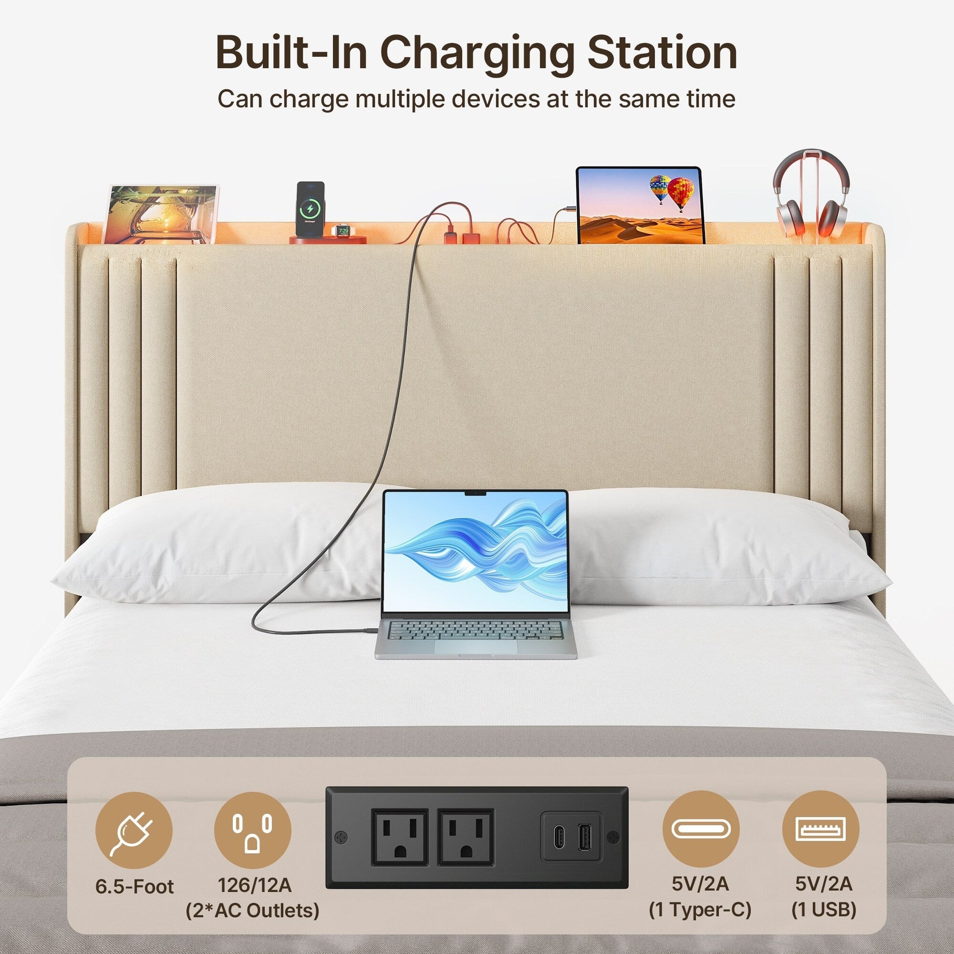 Lit Queen/Full à tête de lit capitonnée avec dossier à oreilles