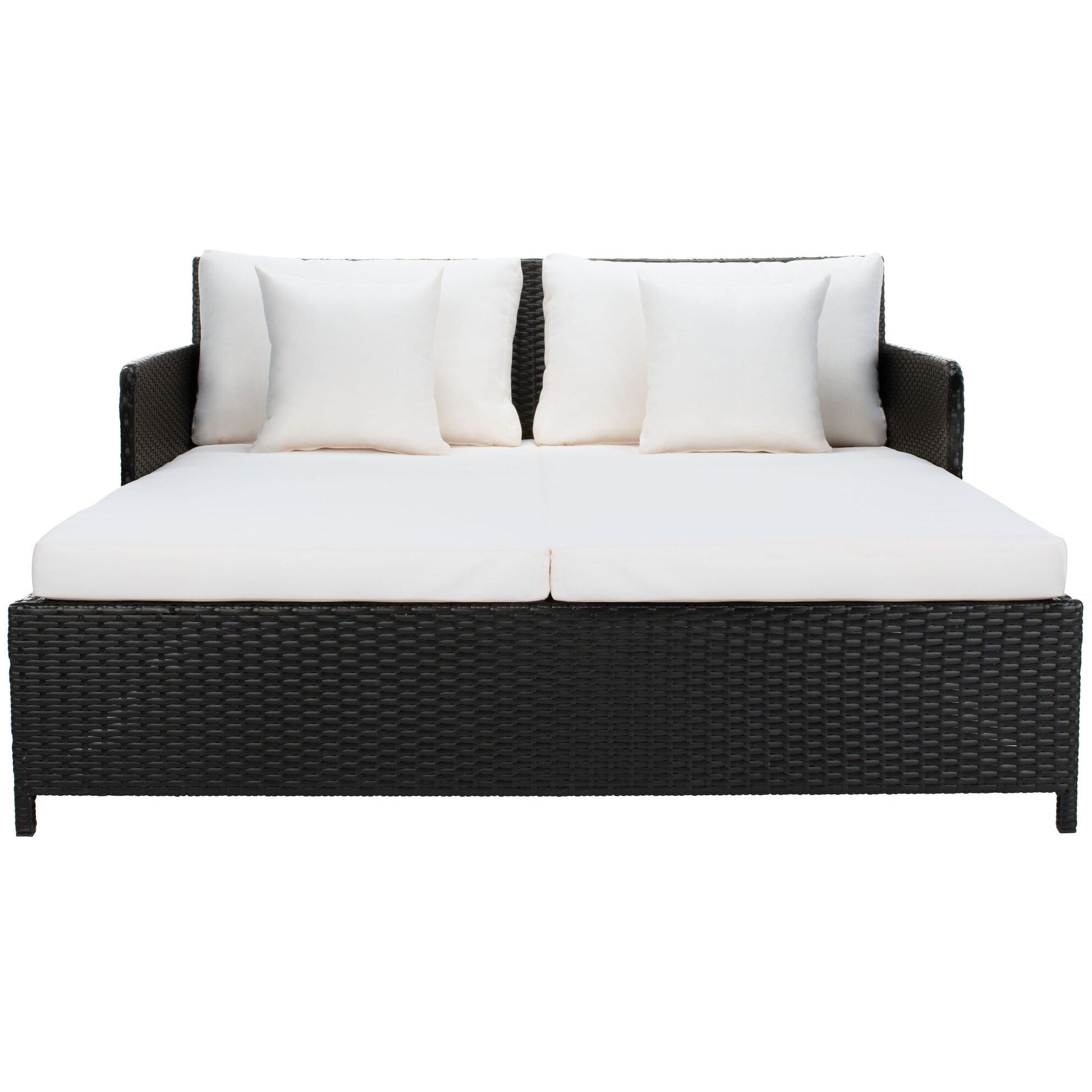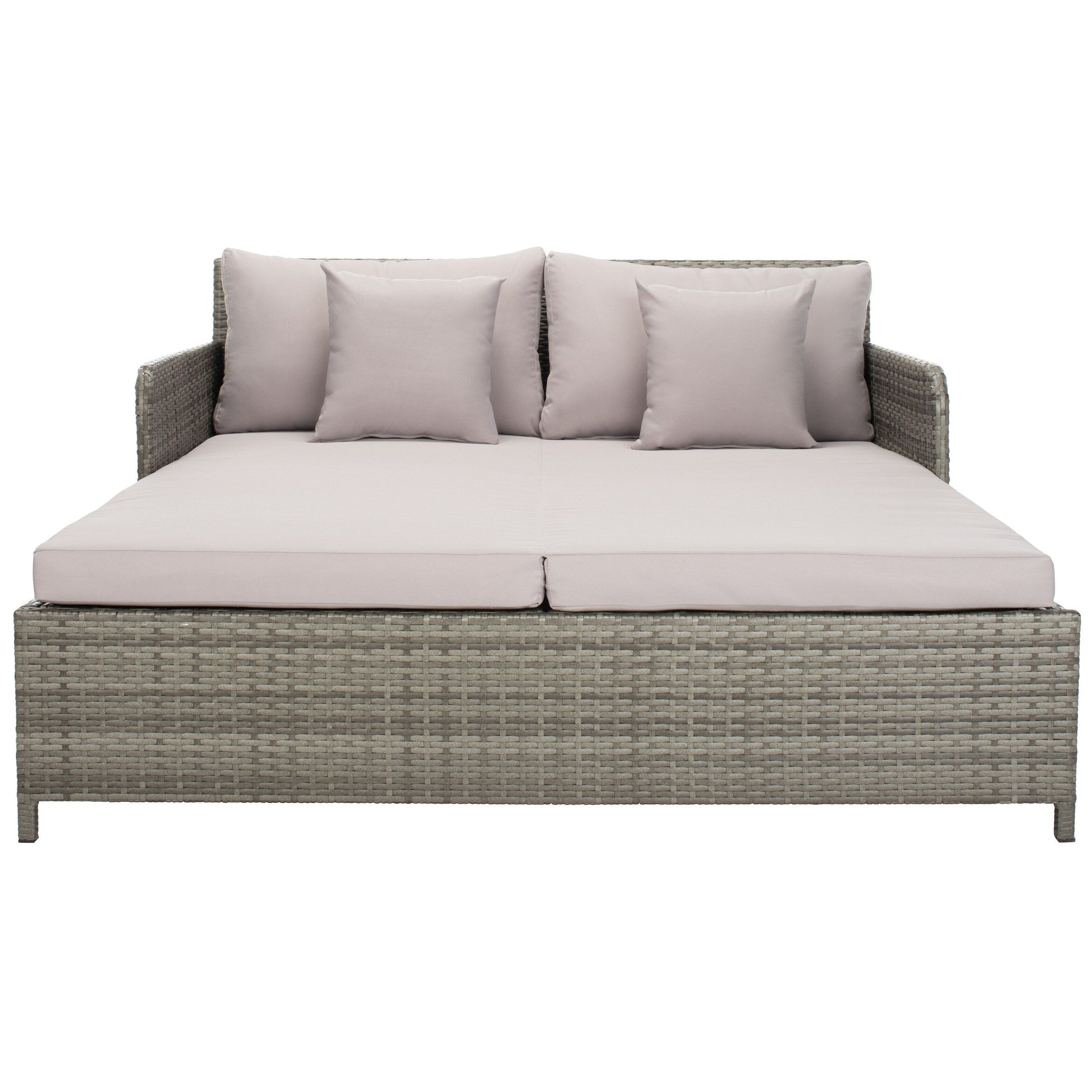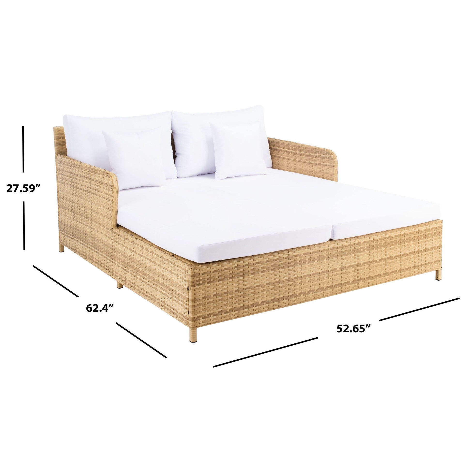 Lit de jour d'extérieur SAFAVIEH Taniyah en osier avec oreiller et coussins - 53 cm (L) x 28 cm (P) x 62 cm (H)