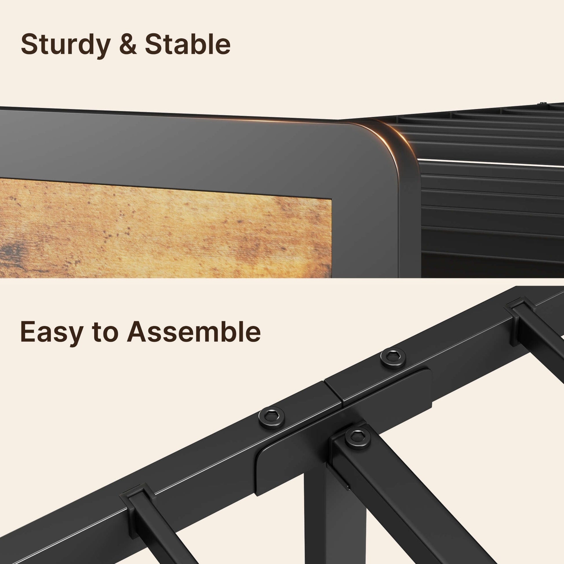Cadre de lit plateforme en métal pour lits jumeaux, doubles, queen et king size, avec tête de lit rembourrée et rangement.