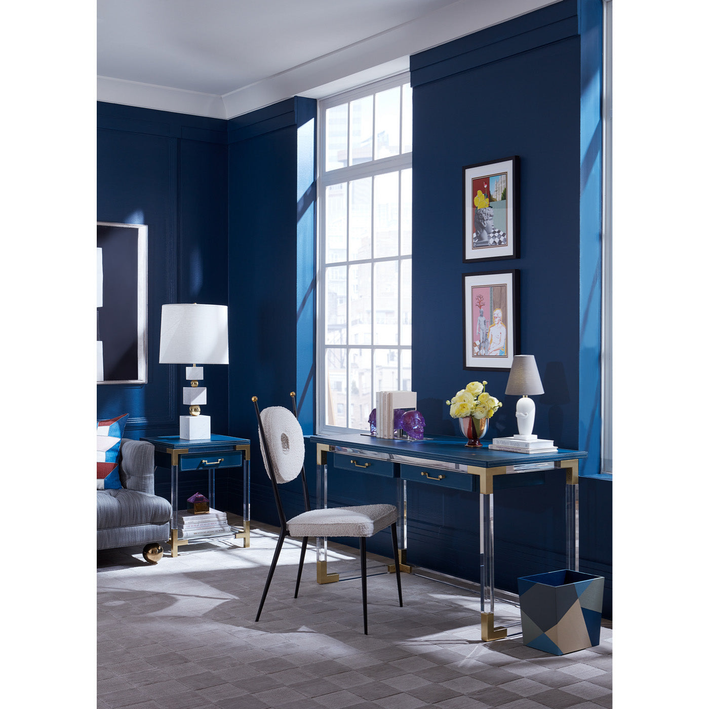 Avec sa structure en acier noirci soutenant un élégant coussin de dossier suspendu en forme de donut, notre chaise Rondo ne passe pas inaperçue. Ornée de sphères en laiton poli pour une touche de glamour supplémentaire, elle est dotée d'un coussin d'assise aux formes harmonieuses. Parfaite pour être associée à d'autres chaises de chaque côté d'une console, ou pour être utilisée seule comme pièce maîtresse.