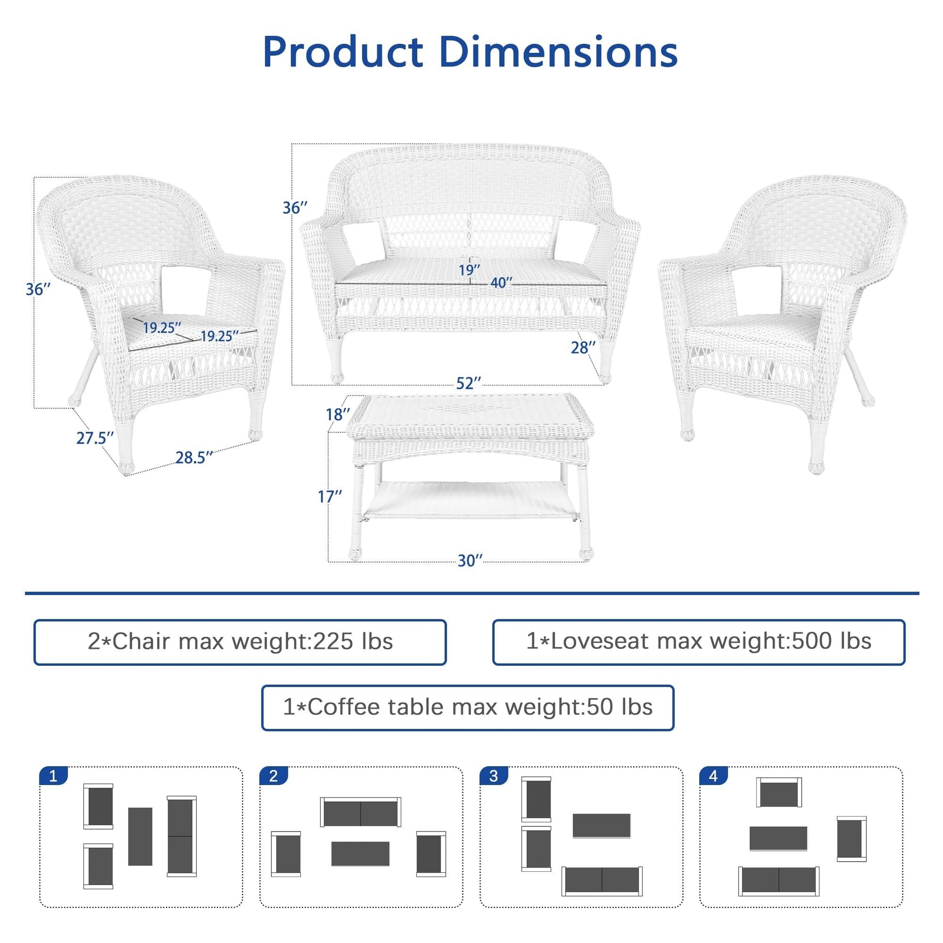 Détendez-vous avec style et confort grâce à cet élégant ensemble de patio en résine tressée 4 pièces qui transformera votre espace extérieur. Fabriqué en résine tressée de haute qualité résistante aux intempéries et doté d'une structure en acier robuste, cet ensemble est conçu pour affronter les intempéries et convient parfaitement à une utilisation intérieure et extérieure. Son design traditionnel en résine tressée blanche apporte une touche de raffinement à votre terrasse ou votre jardin, tandis que le canapé confortable, les deux fauteuils et la table basse offrent de nombreuses places assises pour vous et vos invités.