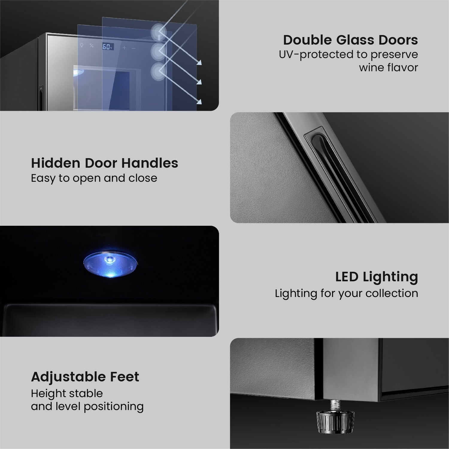 - Fonctionnement silencieux : Fonctionne avec un minimum de vibrations et de bruit, offrant un environnement paisible pour un vieillissement harmonieux de vos vins.